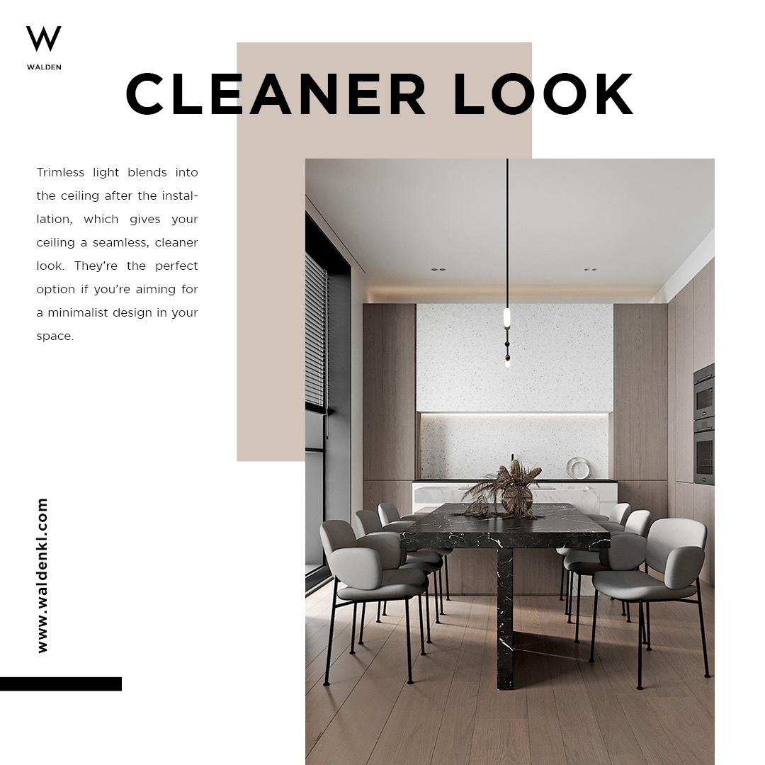 Trimless light blends into the ceiling after installation, giving your ceiling a seamless, cleaner look. They're the perfect option if you're aiming for a minimalist design in your space.