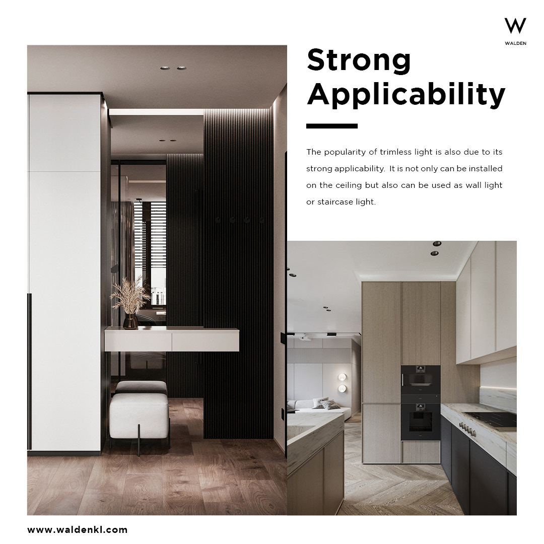 The popularity of trimless light is also due to its strong applicability. It is not only can be installed on the ceiling but also can be used as wall light or staircase light.