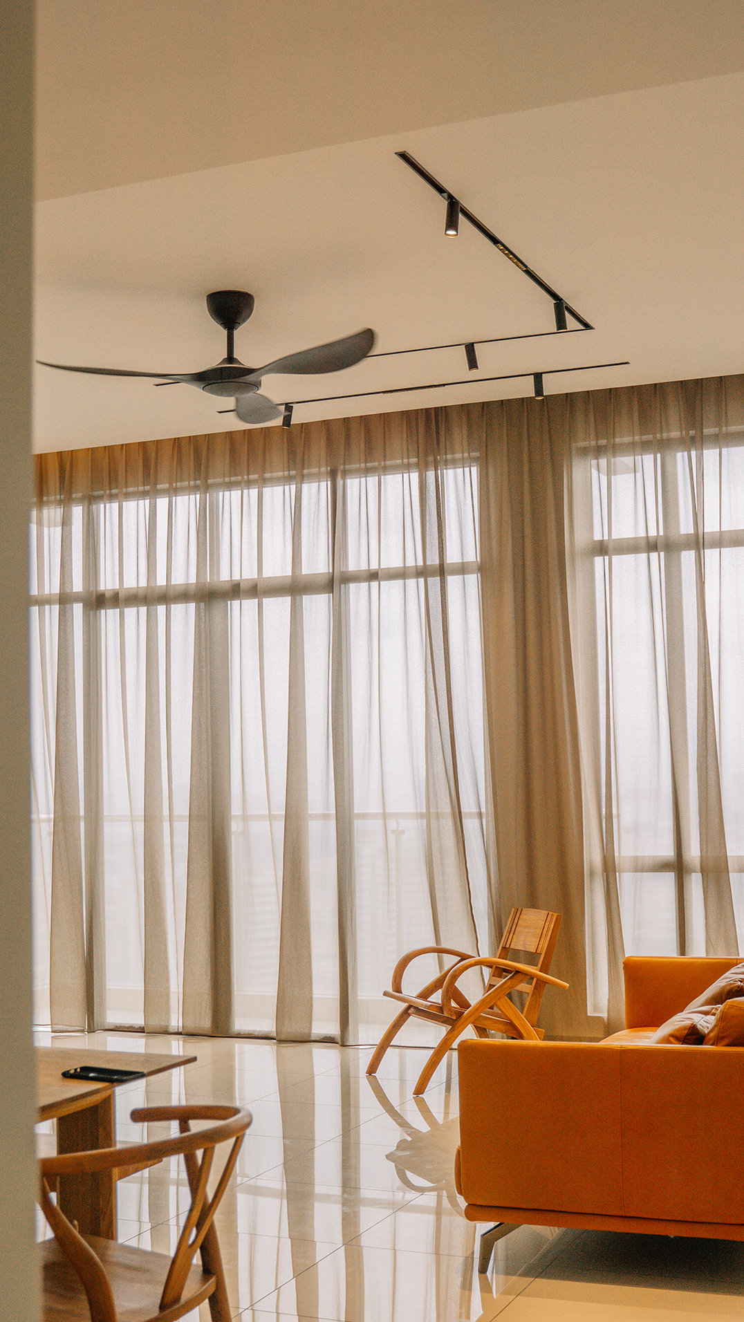 Chong and his family seek a Muji-inspired weekend home for a comfortable and relaxing atmosphere. The design features natural materials and a neutral color palette for a minimalist and serene environment. Warm texture lighting effects create an inviting and cozy atmosphere, carefully placed to highlight the wood and stone textures while providing warmth and comfort in the living areas and bedrooms. The bathroom lighting mimics spa-like natural light with soft and warm lighting, perfect for relaxation during a deep tub soak. The lighting design enhances the overall comfortable environment, creating a luxurious and inviting retreat that allows Chong and his family to unwind and recharge in style.