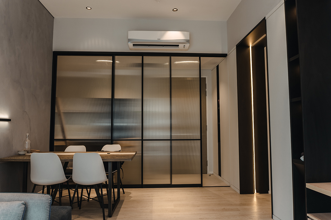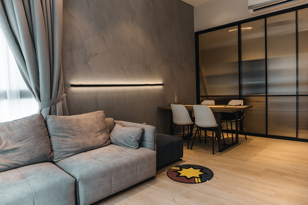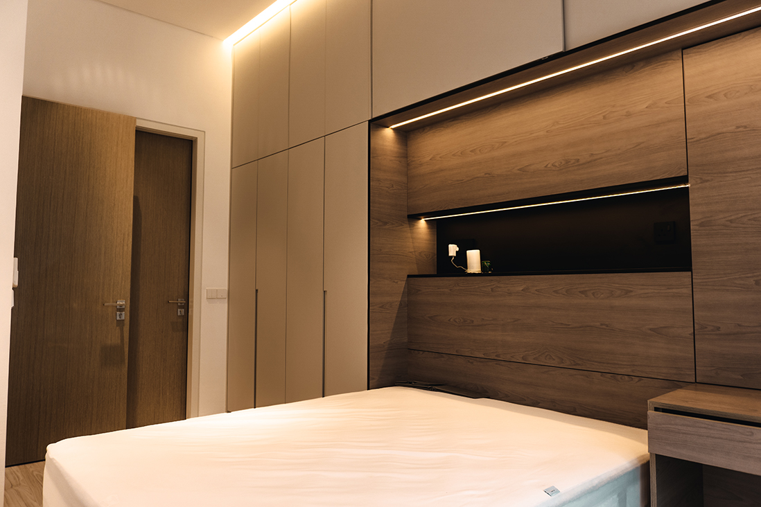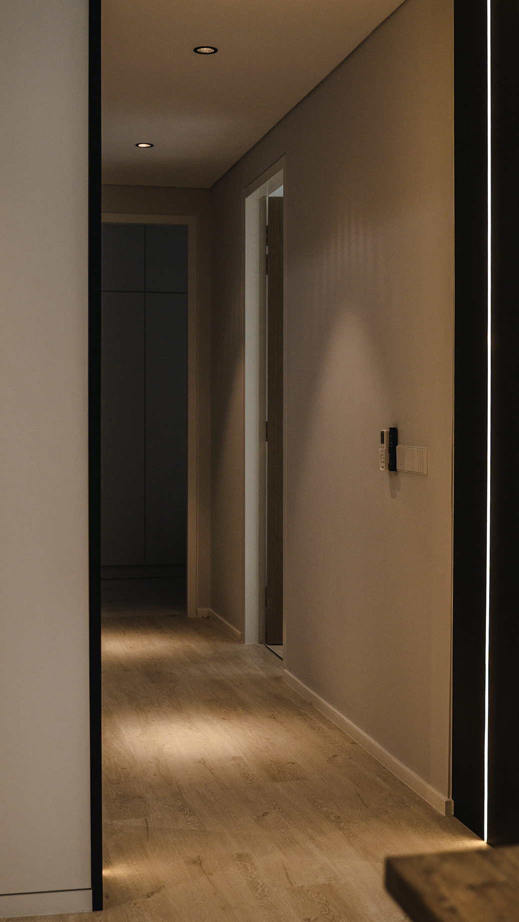 Collaborating with WO DESIGN STUDIO, our team designed a modern and cozy space that incorporates natural materials such as wood and stone, reflecting the owner\'s love for nature. The accent lighting in the space was the primary focus, highlighting the textures of the materials used and creating a balanced ambience. The lighting design provides a relaxing and inviting atmosphere, allowing the user to feel comfortable and at ease in the space. The combination of natural materials and accent lighting creates a visually stunning and functional design that truly enhances the overall ambiance of the space